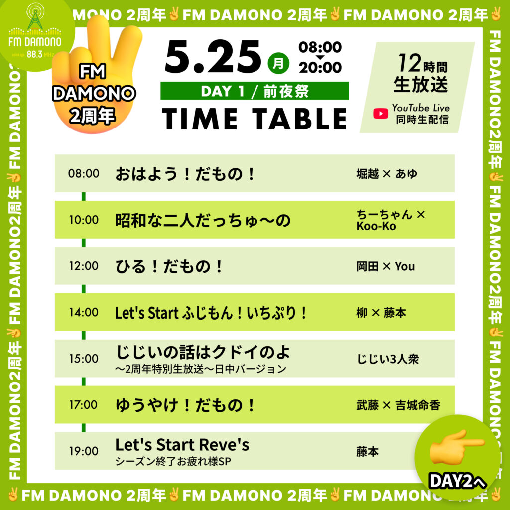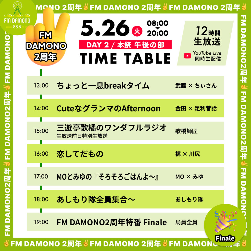 FM DAMONOは、5/26をもって、開局から2周年を迎えます!